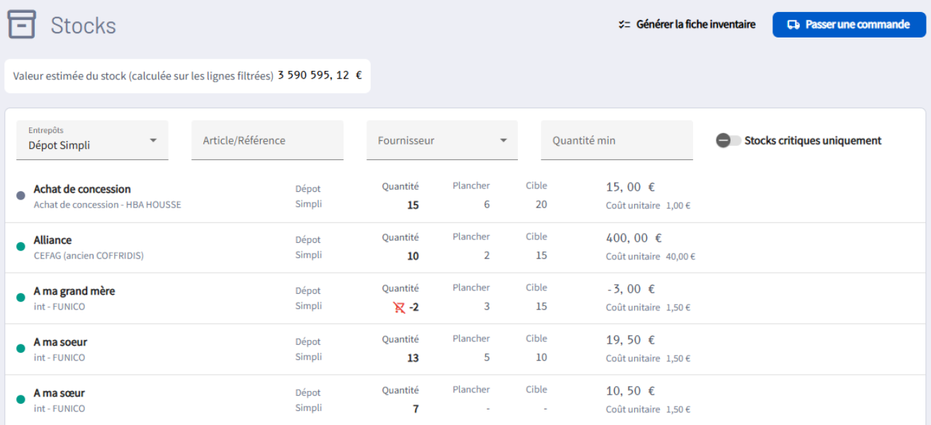 Le logiciel funéraire Simplifia propose une gestion de stock automatisée, capable de suivre en temps réel aussi bien vos ventes en magasin que vos consommables funéraires. En reliant directement vos stocks à vos dossiers, vous bénéficiez d'une visibilité pour piloter vos marges avec précision, que ce soit à l'échelle d'une commande ou d'un dossier.