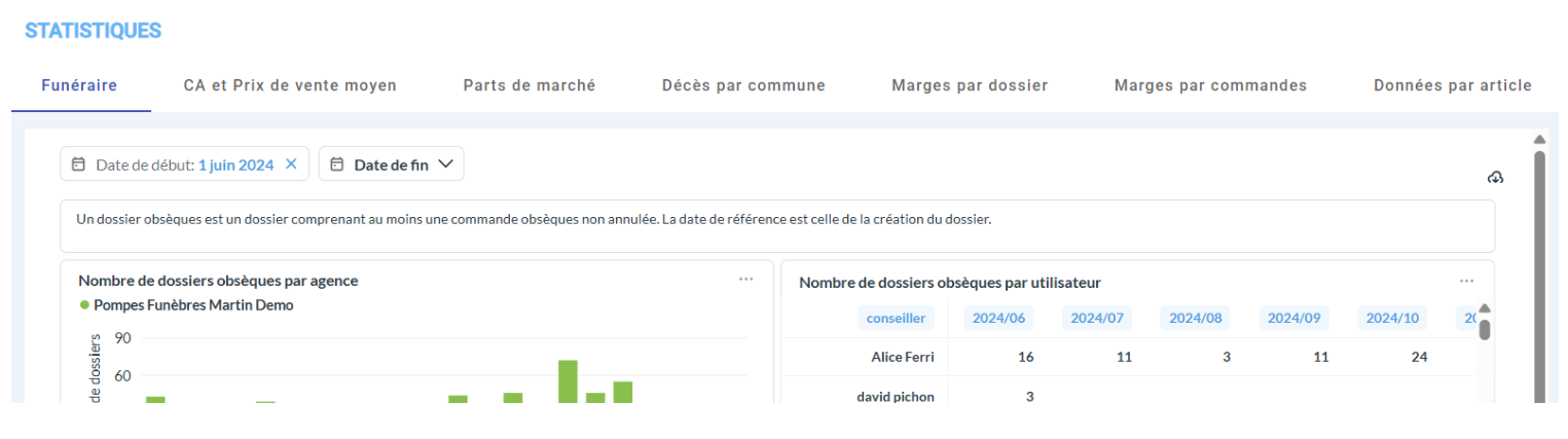 Un logiciel funéraire moderne permet de piloter son activité grâce à des tableaux de bord personnalisés et des statistiques pour évaluer rapidement les performances de ses actions.